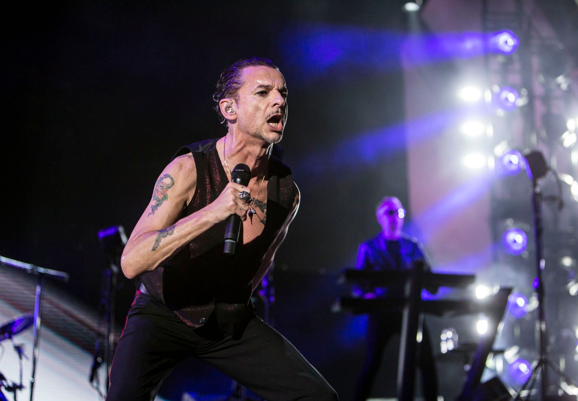 Para peor, la banda no acusó recibo en ningún momento. Dave Gahan seguía haciendo sus piruetas en clásicos como “World In My Eyes” y “Enjoy The Silence”, como si ignorara que solamente era una sombra en medio de unas pocas luces verdes, rojas y azules.